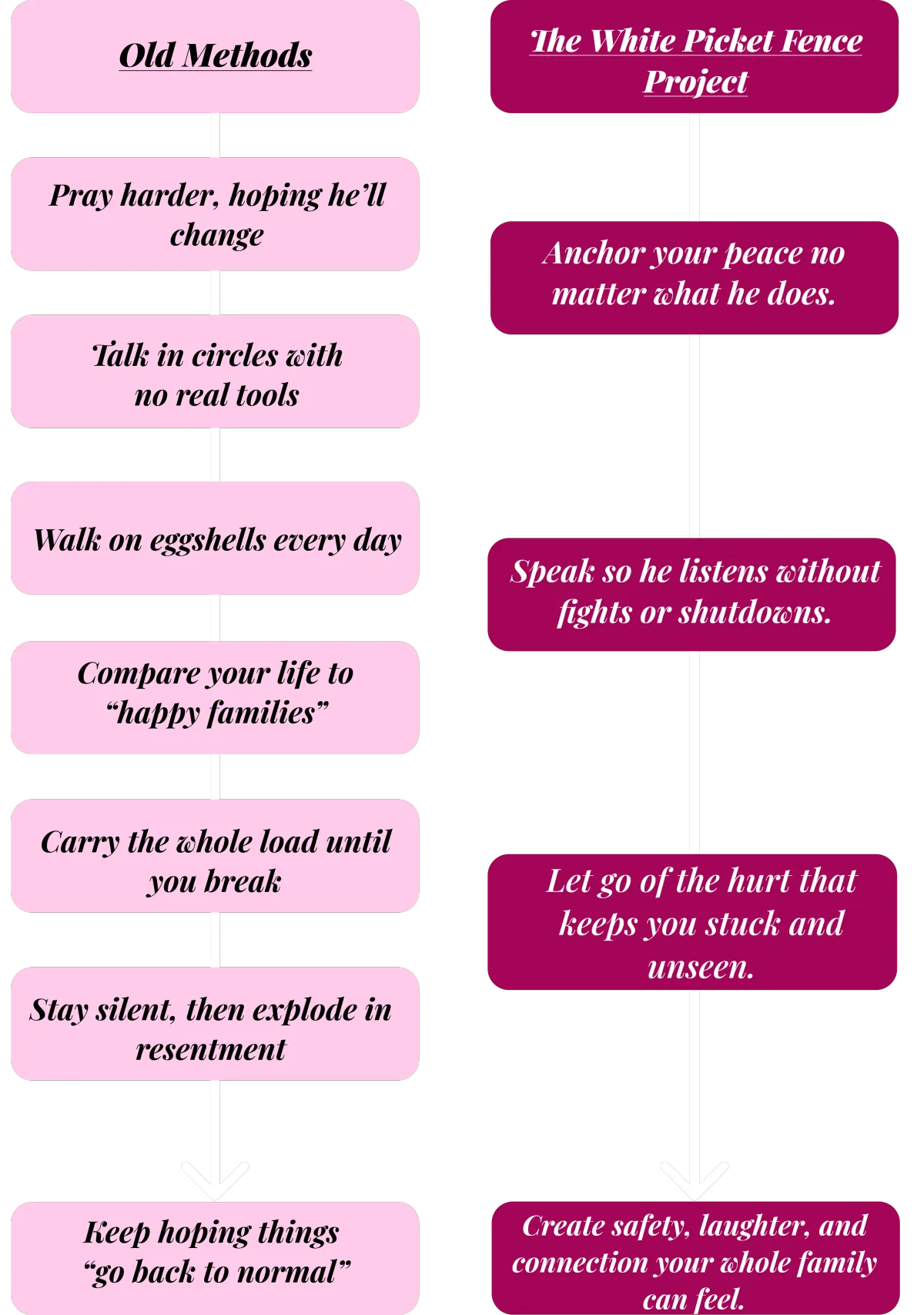 That’s what The White Picket Fence Project is about. Not waiting. Not pretending. Not dying inside. But reclaiming your voice, your peace, and your marriage.